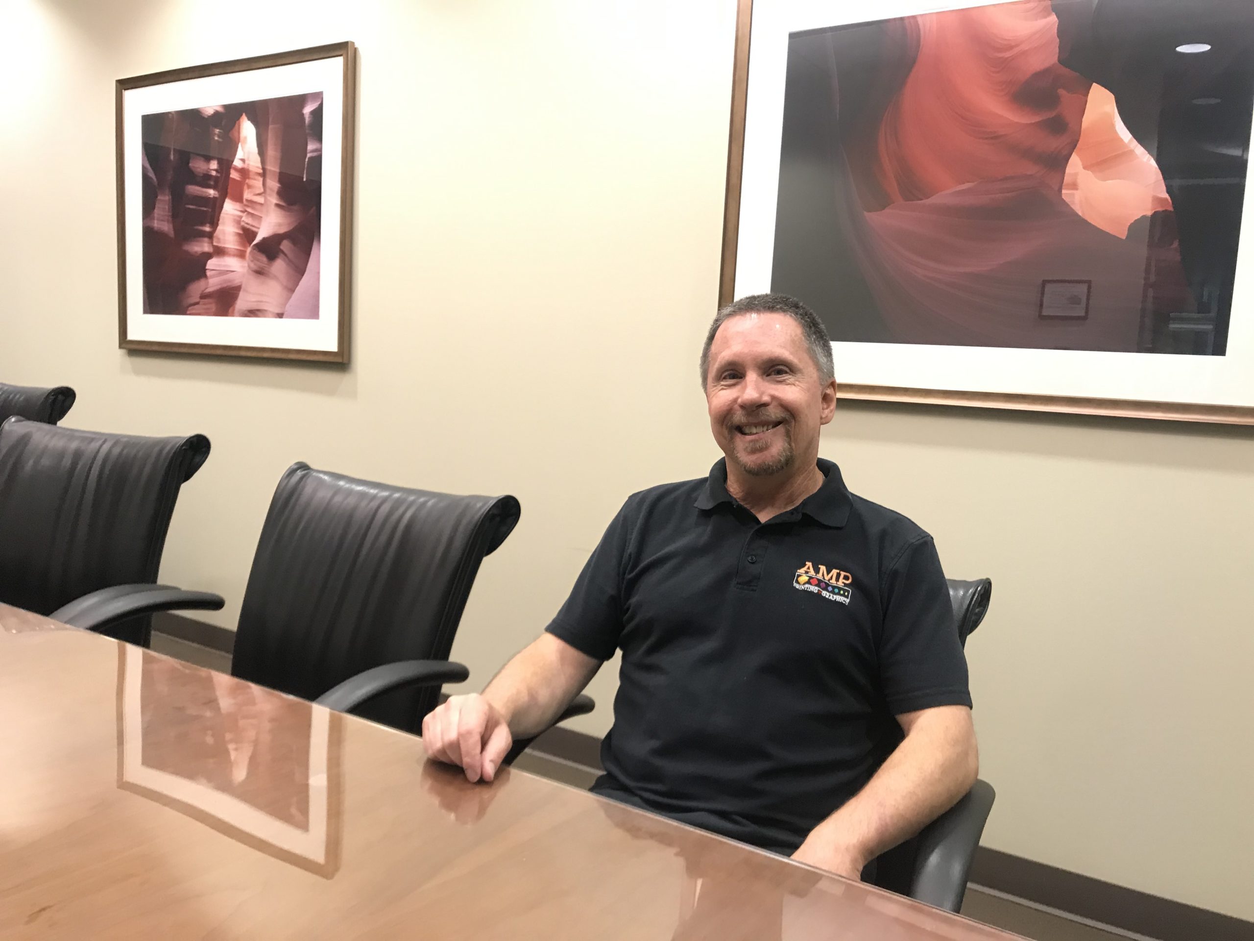 I had a random job interview that turned out to be the best decision that I ever made. That’s how I met Bob Trimble, my boss/partner/mentor/friend. He has taught me everything that I know about the industry, customer service and work ethic. Bob owned his own company, and Amp bought him out in 2010. I had been with Bob for eight years before that, so I’ve been in printing for going on 18 years.